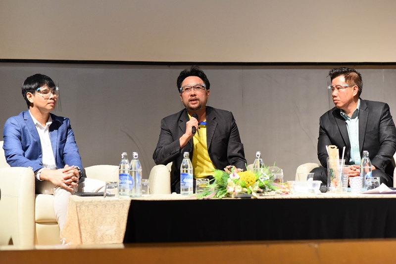 Dr. Banja Junhasavasdikul, Chairman of the Rubber Division, Polymer Society of Thailand; Dr. Julathep Kajornchaiyakul, Executive Director of the National Metal and Materials Technology Center; and Dr. Chaya Chandavasu, Senior Vice President, Sustainability and Corporate Branding of PTT Global Chemical Public Company Limited, participated in the panel discussion in the opening ceremony of “Green technology and circular economy” academic talk. Moreover, Mr. Tanachart Ralsiripong, AVP, Specialty Business and Corporate Development of Thai Wah Public Company (TWPC) and technical expertise and researchers from various organizations that are successful and working on this aspect joined the talk on the topic of “Biodegradable for single-use replacement and additives for Improving the performance of Biodegradable product” to share knowledge to scholars, researchers, industrialists, and relevant person to pay close attention and to find ways to develop green technology and circular economy in order to maximize the benefit to the development of Thai industry.