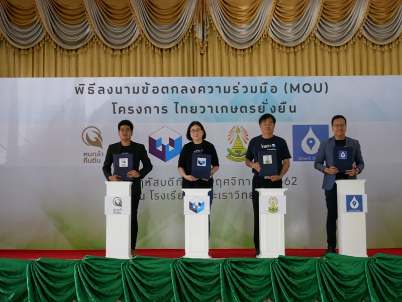 Thai Wah Public Company Limited or TWPC, who has been in agro-industrial and food business alongside Thai society for over 72 years, has entered into a Memorandum of Understanding (MoU) Signing Ceremony with Konglakuentin (Social Enterprise) Co., Ltd., In-Tech Value Co., Ltd. and Mae Charao Witthayakhom School, Mae Sot District, Tak Province, in the project "Thai Wah Sustainable Agriculture" in order to raise awareness for the young generation to love agriculture and understand integrated farming according to the royal initiative. Be a prototype for farmers in the community to develop planting areas and creating potential farmers back to the community by encourage with knowledge and agricultural technology as well as the use of smart farming (Smart Farm) in response to the Thailand 4.0 policy by selecting Mae Sot District, Tak province as a pilot community.